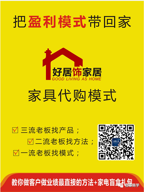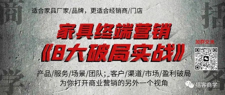 你有3种免费获取方式:①转发朋友圈;②产品合作;③加入【家具终端营销破局】研修班,详情请咨询。