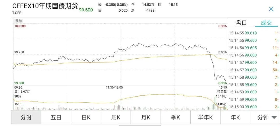 国债期货全线收跌,10年期主力合约跌0.35%,盘中一度跌0.40%,5年期主力合约跌0.29%,盘中一度跌0.39%,2年期主力合约跌0.17%,盘中一度跌0.31%。华东地区一位银行交易员表示,周二资金面延续收敛,加上止盈盘落袋为安,此外股市连续大跌有基金开始扛不住了,开始卖债了。