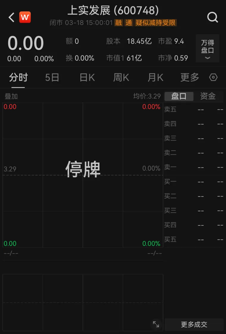 3月18日,上实发展临时停牌,停牌前一个交易日收报3.29元/股,市值61亿元。