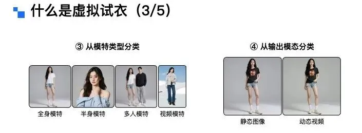 另外两类分别是视频试穿方向和套装试穿方向。随着单件服饰图像试穿技术逐渐成熟,学术界开始朝着不同维度拓展研究边界,一个是从静态图像延伸到动态视频,一个则是从单件服饰试穿升级到多件搭配的套装试穿。