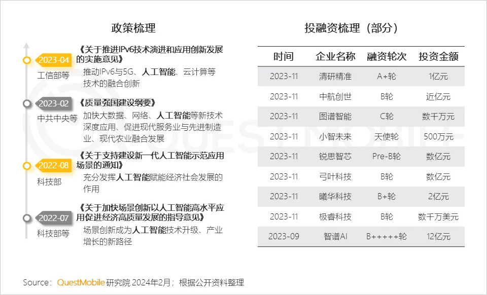 3、在国家政策的推动下,我国人工智能(AI)产业呈现出蓬勃发展的态势,人工智能有望成为我国在国际市场实现高新技术领域弯道超车的关键节点;聚焦于生成式人工智能(AIGC)领域的投融资活动受到广泛关注。
