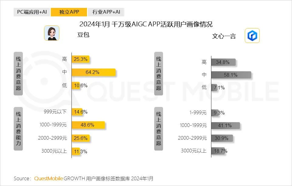 8、从用户画像来看,文心一言的男性、高线级城市用户占比更高,豆包年轻化特征更明显,背后与两款产品定位与应用场景的差异有关