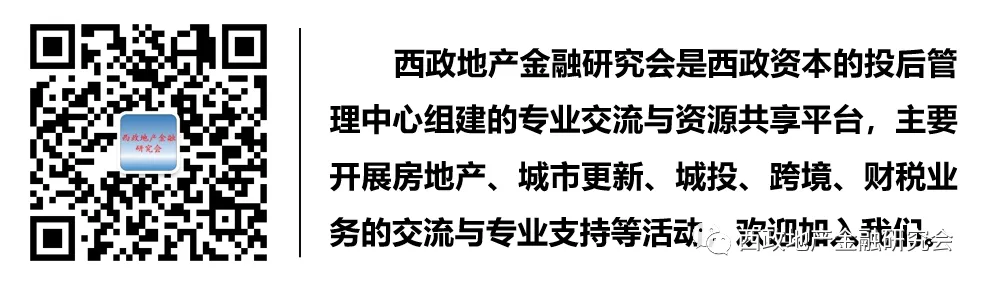 因本文篇幅过长,为方便阅读,欢迎读者添加小秘书(微信号:yanjiuhui-2)领取本文的PDF版本。更多业务方面的操作细节欢迎加入“西政地产金融研究会”参与交流或探讨,亦欢迎点击文末的“阅读原文”听取本文相关的业务实操视频分享内容。