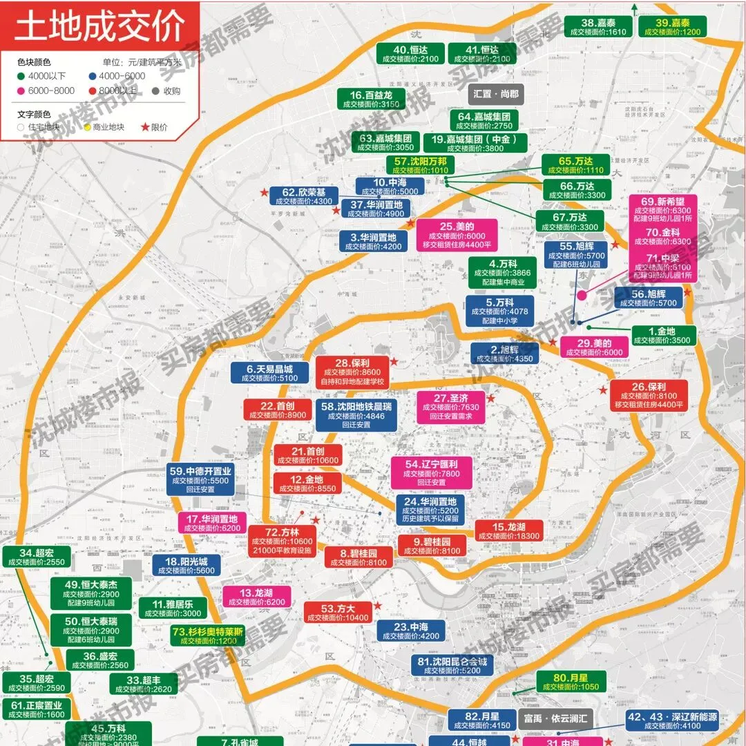 2019年沈阳土拍市场呈现“四面开花”的态势,新市府、长白、沈北,老城心沈河土地价格都呈现“节节攀高的态势。