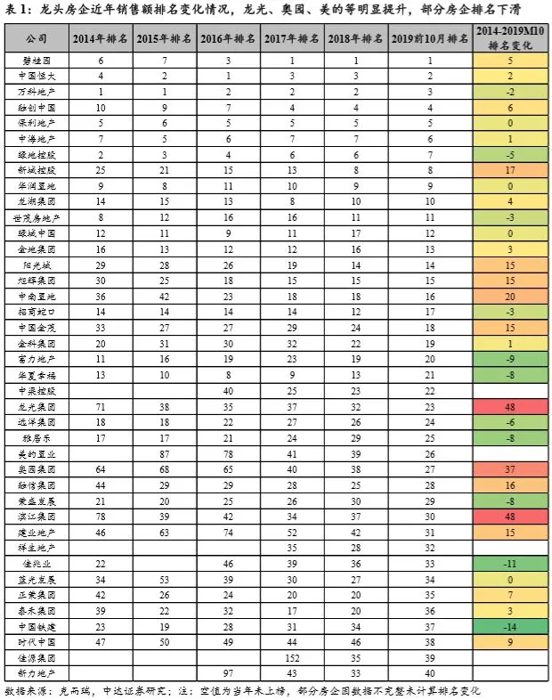 部分房企因产品和布局问题,近年来排名持续下滑。近年来,部分曾经长期领先的老牌房企出现发展滞后、排名下滑的情况,如绿城中国、泰禾集团等,核心原因在于布局和产品方面与主流需求之间存在错配。布局方面,上述房企集中于核心城市市中心进行布局,产品方面则以高端、豪宅为主,而这些区域和产品恰恰是受到了最严格的调控,且核心城市需求近年来普遍出现了一定外溢。发展的滞后仍然是对人口和政策两大需求维度把握的偏差造成。