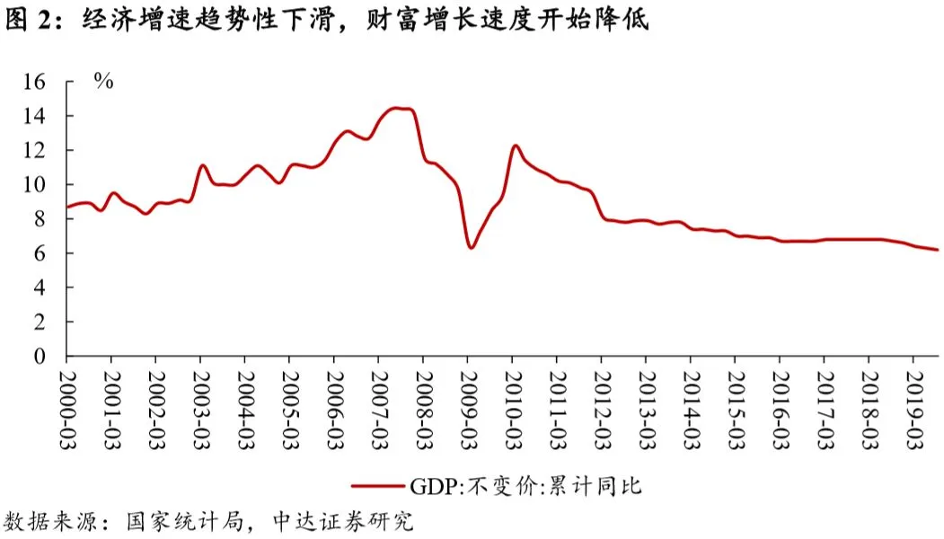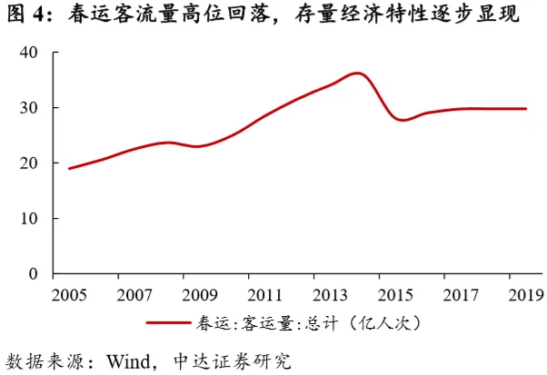 经济增长动能逐步减弱,存量经济特征日趋明显。改革开放至今已逾40年,经历了长期高速增长后,经济增速趋势性下降已是不争的事实。2019年前三季度,我国实际GDP同比增长约6.2%,增速较2018年全年继续下滑0.4个百分点。从人口流动指标来看,全国流动人口2015年起开始高位回落,春运中客流量也在2015年大幅下降后走平。流动人口数量的下降,意味着劳动力这一生产要素的流动性下降,经济整体活力必然降低,存量经济特征将日趋明显。整体经济蛋糕快速做大、参与者共享红利的时代即将成为过去式。