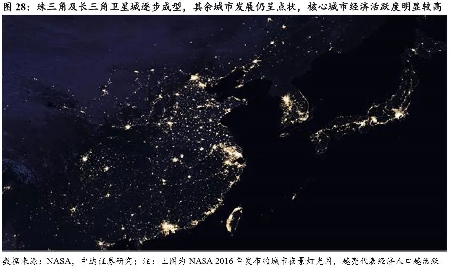 大城市化顺应经济客观规律,城市间分化料将加大。大城市人口、资源分布更为集中,产业分工更为合理,大城市化更有利于产业发展和生活水平的提高;根据世界银行发布的《2009年世界发展报告》,全球有半数的经济活动发生在1.5%的陆地区域。基于此,可以推测我国未来人口和产业将进一步向少数发达城市聚集,城市与区域分化将是大势所趋。在19世纪后期到20世纪初期,美国中西部因为水运便利、矿产丰富,因此成为了重工业中心,钢铁、玻璃、化工、伐木、采矿、铁路等行业纷纷兴起,区内城市一度相当发达。然而当美国步入第三产业为主导的经济体系之后,这些地区的重工业纷纷衰败,很多工厂被废弃,形成了所谓的“铁锈地带”;与之类似的还有德国鲁尔区、日本北九州地区等。目前以新兴产业为主导的洛杉矶、旧金山等城市成为了美国人口和经济最发达的城市。国内部分传统重工业城市也正在经历人口外流与经济衰落,如近期因“房价可低至200元/平”报道而走红的甘肃玉门市老城区。可以预见的是,城市选择在房企投资活动中的重要性将更加凸显。