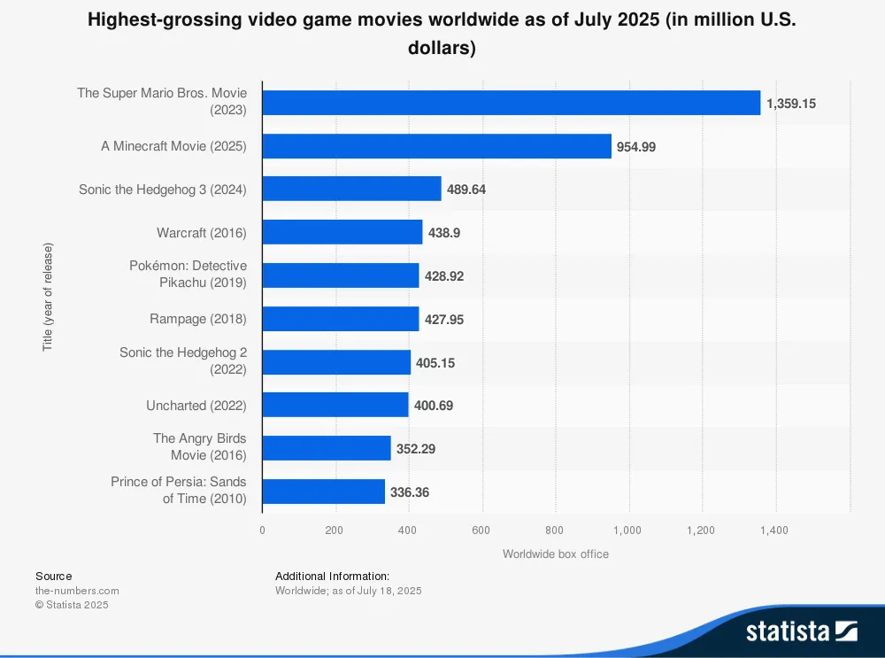 截至2025年7月全球票房最高的电子游戏改编电影(以百万美元计)。数据来源:Statista.com为什么在市场竞争空前激烈的当下,经典系列依然屡创新高?为何玩家愿意为虚拟物品、订阅服务投入更多?AI、订阅、长线内容,这三股力量如何共同塑造下一代游戏体验?