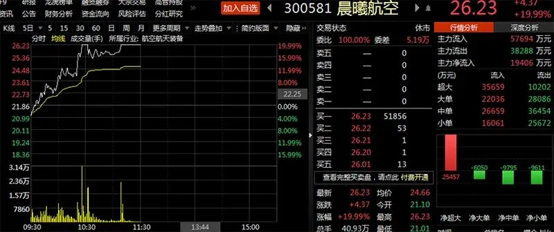 晨曦航空涨20%