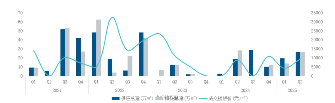 图:2021-2025年Q2深圳商办土地供销走势