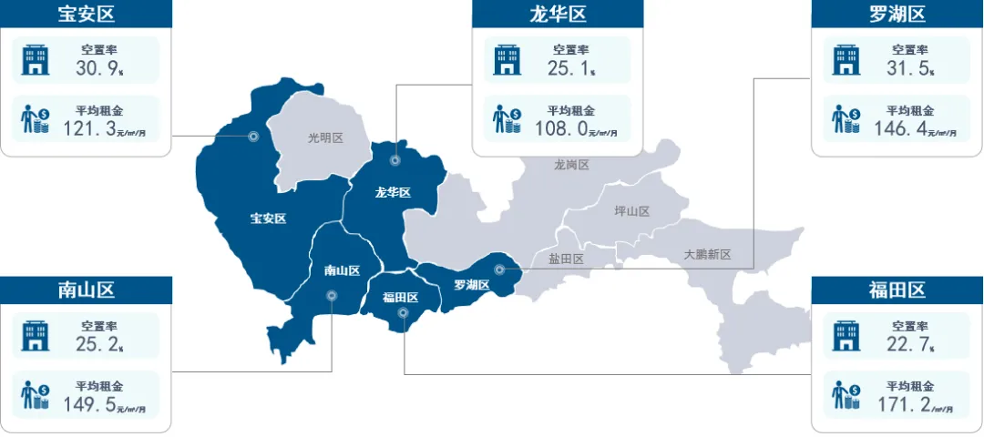 二、2025年Q2深圳各区甲级写字楼租赁市场概况