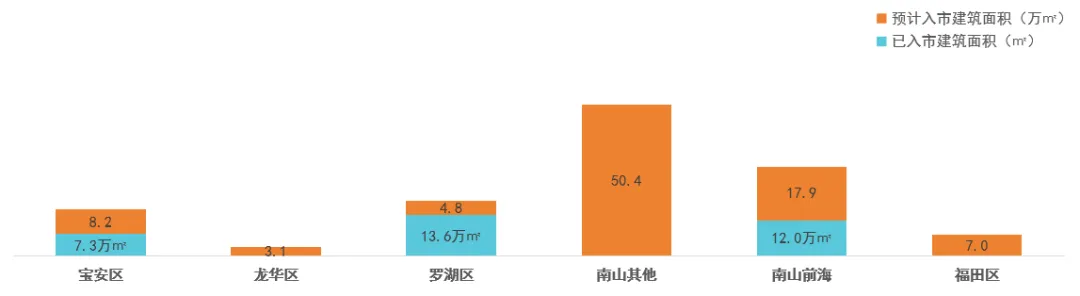 图:各行政区2025年已入市和预计入市办公建筑面积对比
