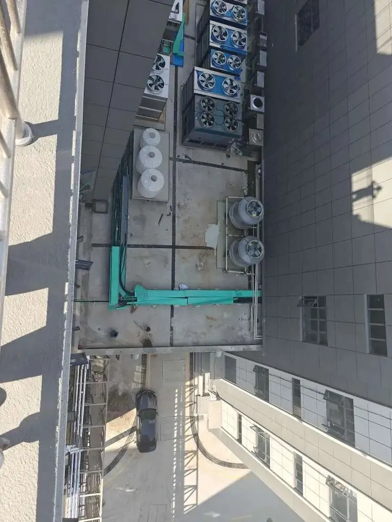 事故发生在宁波市奉化区西坞街道奉化万存电镀产业园,事故现场位于该产业园104B栋厂房的四楼楼顶平台,坠落点位于二楼平台。四楼平台堆放有大量的环保设备的零部件,一台STC1800C7汽车起重机吊臂的下方吊有一台喷淋塔,塔头落地,塔基座朝上,与地面呈30度左右的夹角,塔基座朝南与南边护栏平行,塔基座位于护栏上方,中间为排水沟,沟深0.43米,宽约2米,护栏安装于排水沟南侧上,高1.35米。护栏外垂直下方二楼平台处,坠落平台与四楼作业平台距18米。玻璃纤维电缆桥架有明显的撞击痕,桥架崩裂,洒落有碎片,桥架西侧1.5米左右有沙子覆盖的一滩血迹。该汽车起重机(浙B6N590),位于该厂房南边空地上,呈展开状态,吊臂打开7节,长度65.4米,吊臂上方两节位于4楼楼顶平台,操作室与4楼作业面呈作业盲区。