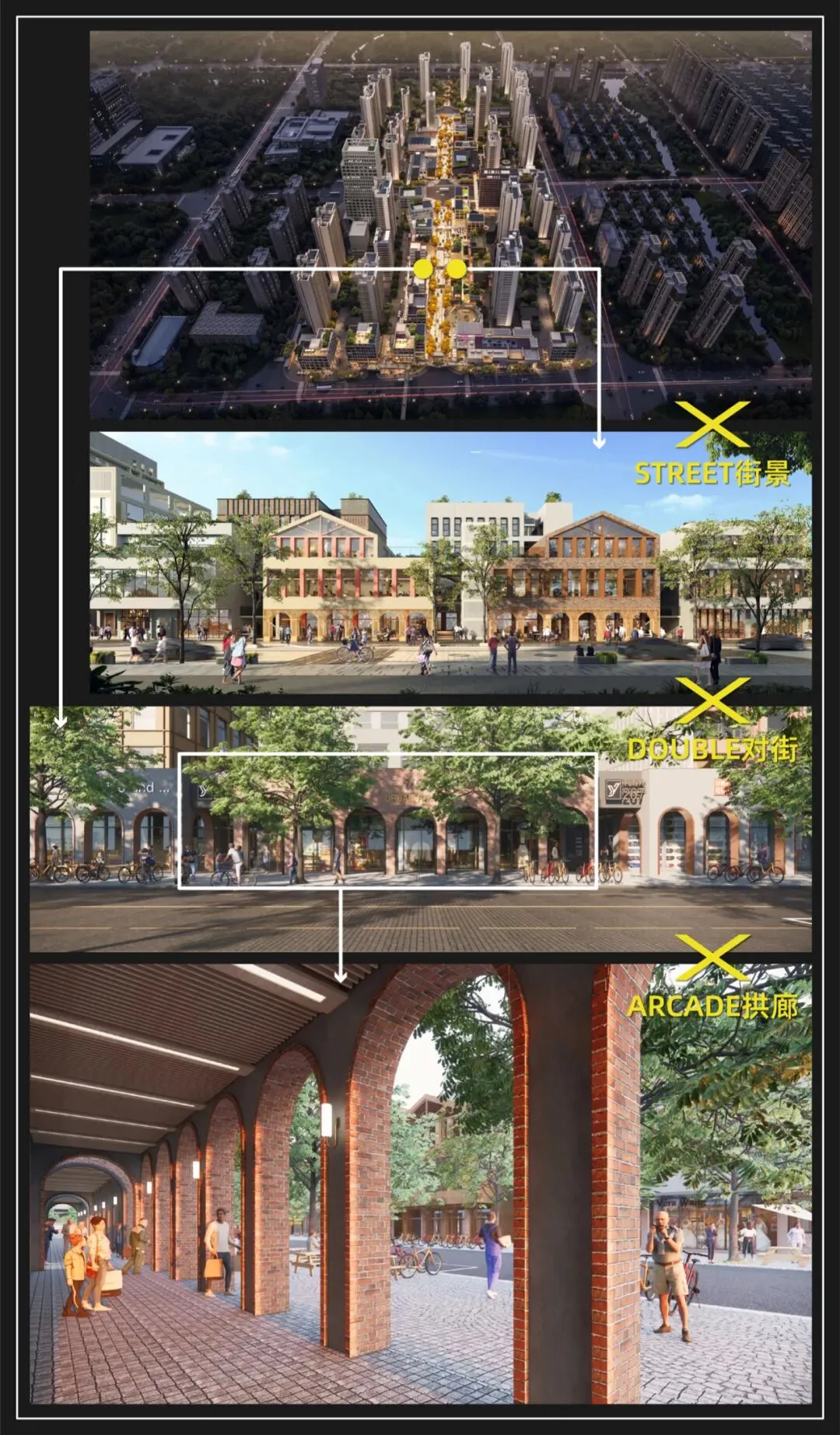 在所有的中国房地产项目中,你很难看到如此迷人的街景。因为它不是做一排乏味而杂乱的沿街底商,也不是给住宅区镶嵌一条优雅的商业街区(虽然这已经是很高级的观念了),而是重构了一整套街景系统,进而带来了更高的场景浓度,与城市深度交融。