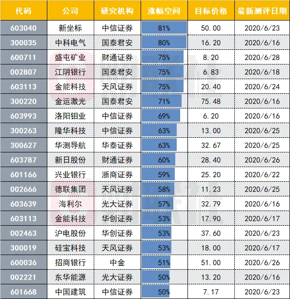 行情太好不知道选什么?涨幅空间超50%的标的看这张图就够了。