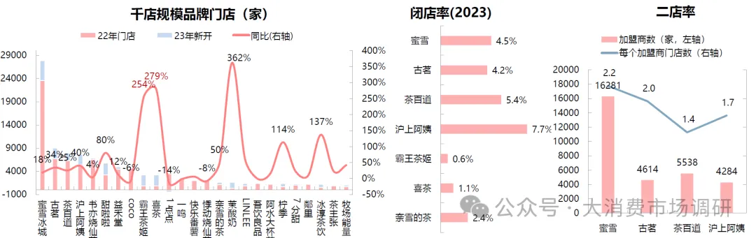闭店:主流品牌闭店率均低<5%(沪上阿姨除外),整体数据健康。