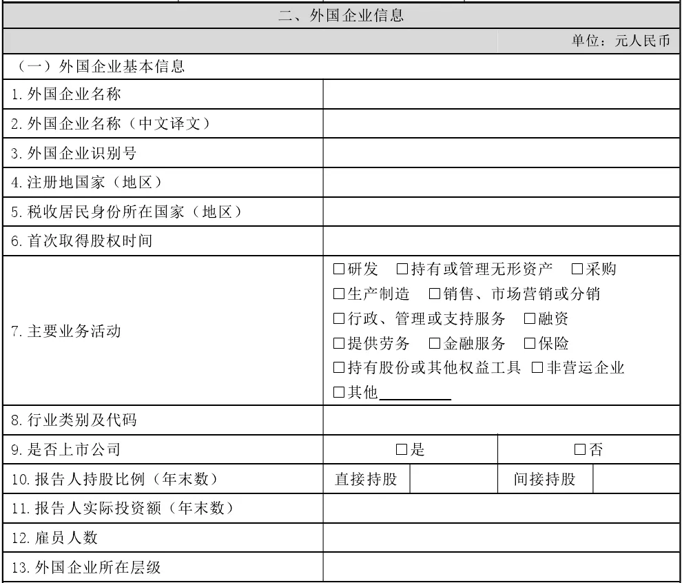 《报告表》中的报告人信息、外国企业信息中的外国企业基本信息应如何填写?