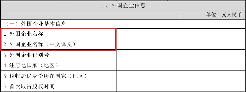 填写境外被投资企业的名称。填报的名称为外文的,应同时填报中文译文名称。