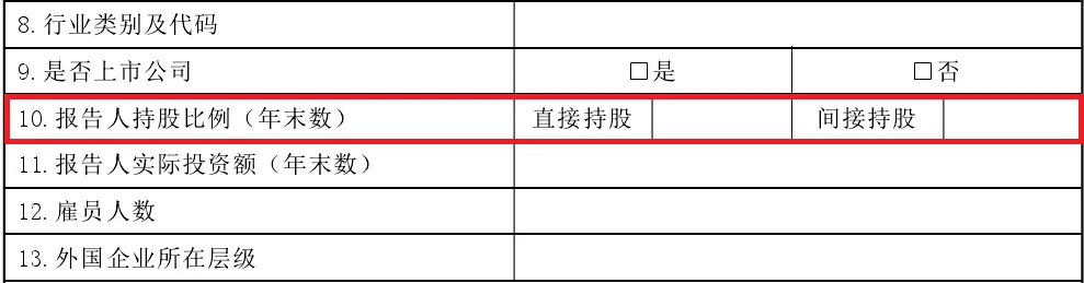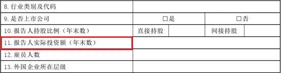 报告人直接持有境外企业股份时填写。对境外被投资企业的实际投资额,按照所属期末账载金额人民币数填报。