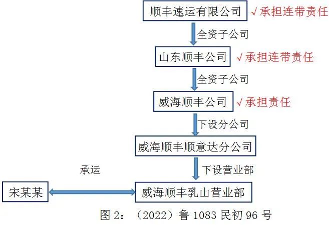 【法院审理】争议的焦点问题:(二)、宋礼海的货物损失应该由谁承担赔偿责任。《中华人民共和国公司法》第十四条第一款规定“公司可以设立分公司。设立分公司,应当向公司登记机关申请登记,领取营业执照。分公司不具有法人资格,其民事责任由公司承担。”、第六十三条规定“一人有限责任公司的股东不能证明公司财产独立于股东自己的财产的,应当对公司债务承担连带责任。”本案中,威海顺丰乳山营业部通过上门揽收的方式为宋礼海运送货物,双方之间的货物运输服务合同成立并生效,威海顺丰乳山营业部作为承运人,应对运输过程中的货物灭失承担损害赔偿责任;因威海顺丰乳山营业部、威海顺丰顺意达分公司系威海顺丰公司设立的分公司,不具有法人资格,其民事责任由威海顺丰公司承担;山东顺丰公司系威海顺丰公司的一人股东、顺丰速运有限公司系山东顺丰公司的一人股东,其均不能提供证明公司财产独立于股东自己的财产,应当对威海顺丰公司的债务承担连带责任。
