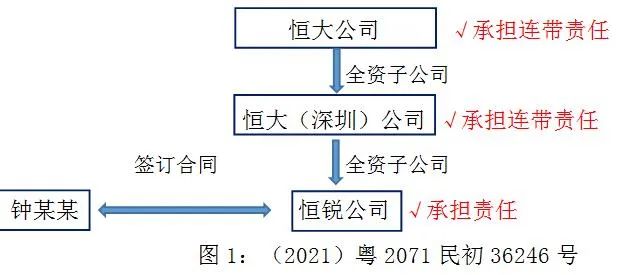 【法院审理】关于恒大(深圳)公司对恒锐公司本案应负债务、恒大公司恒大(深圳)公司对本案应付债务应否承担连带清偿责任的问题。恒锐公司为有限责任公司(法人独资、私营),恒大(深圳)公司是其唯一股东。恒大(深圳)公司是有限责任公司(法人独资),恒大公司是其唯一股东。《中华人民共和国公司法》第六十三条规定:“一人有限责任公司的股东不能证明公司财产独立于股东自己的财产的,应当对公司债务承担连带责任。”本案中,恒锐公司与恒大(深圳)公司、恒大(深圳)公司与恒大公司均未能举证证明其两两之间财产各自独立、相互分离,不存在财产混同的情形,应就此承担举证不能的不利后果。依照前述法律规定,恒大(深圳)公司应对恒锐公司、恒大公司应对恒大(深圳)公司在本案中的应负债务承担连带责任。