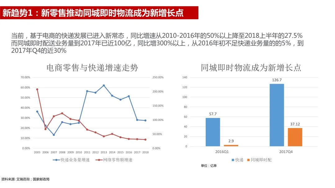高红冰认为,新技术驱动的新零售,拉动新制造,对物流业带来了巨大改变,新物流未来发展呈现三大趋势:同城即时配物流兴起,仓储配送协同共享,C端场景物流创新与线上线下供应链融合