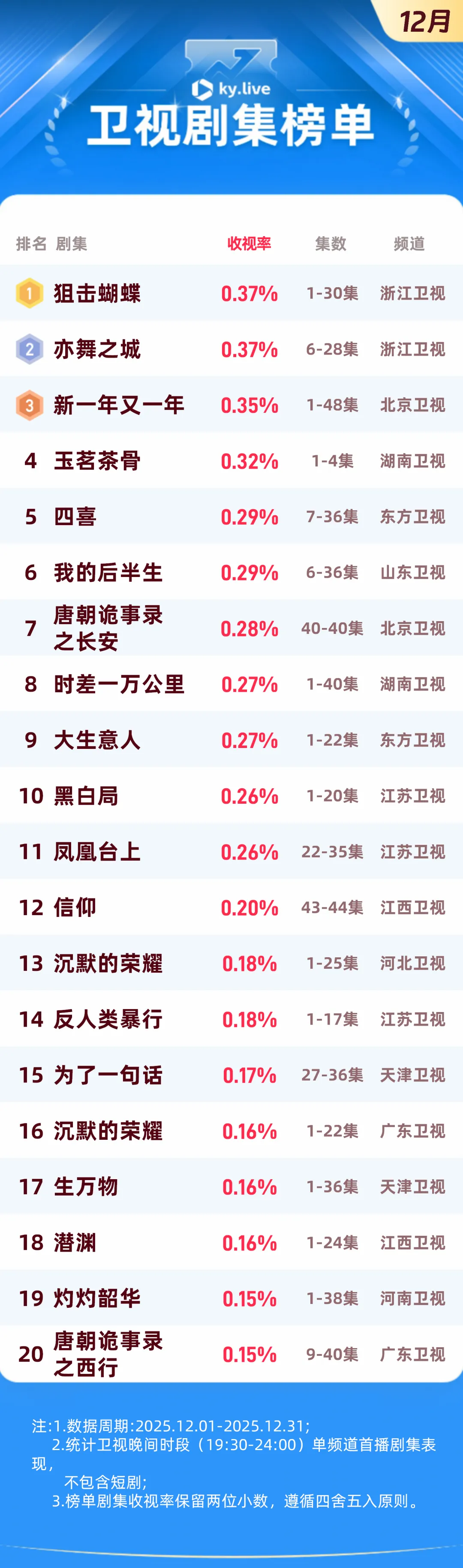 12月央视剧集排名:
