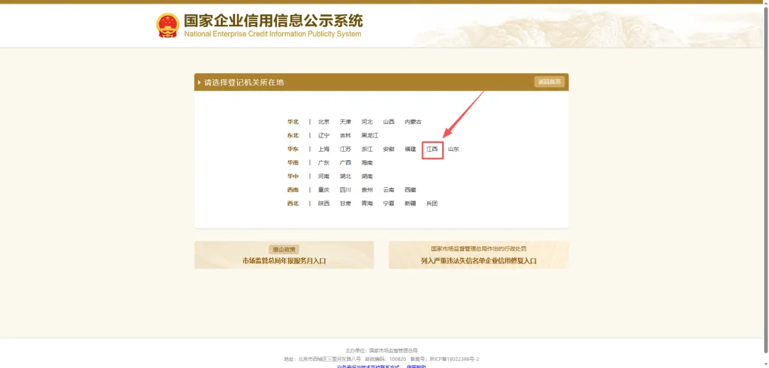6.选择“江西”