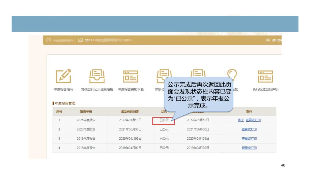 11.显示2025年度报告,状态已公示即为已完成年报。