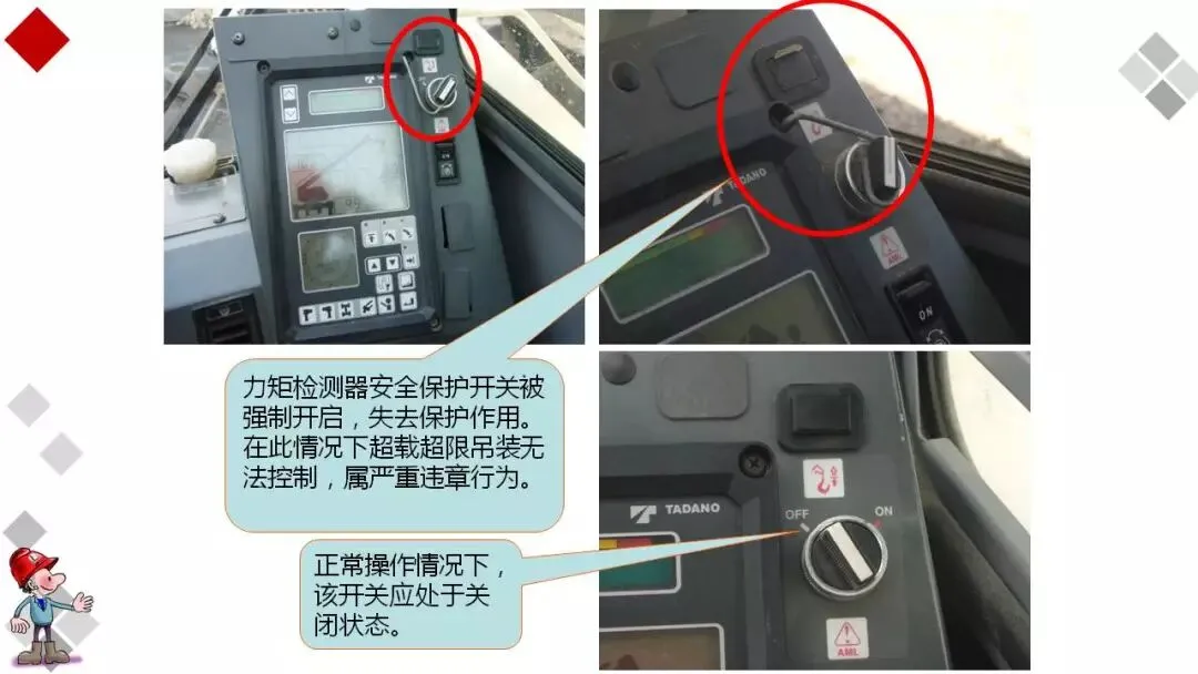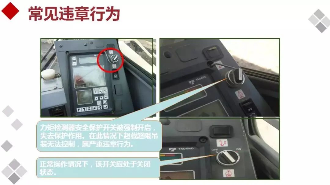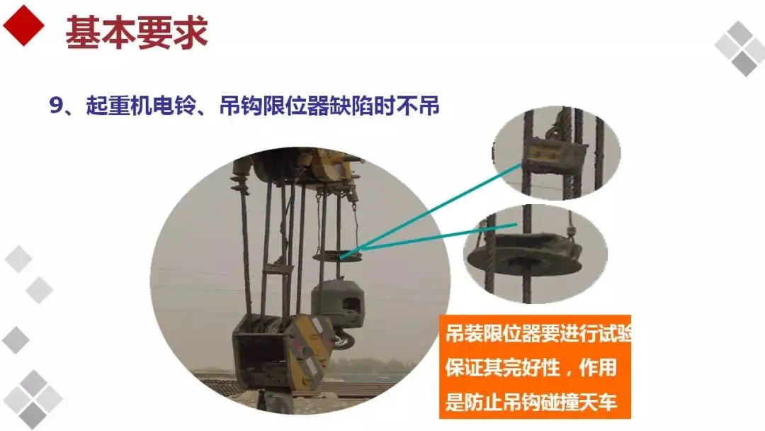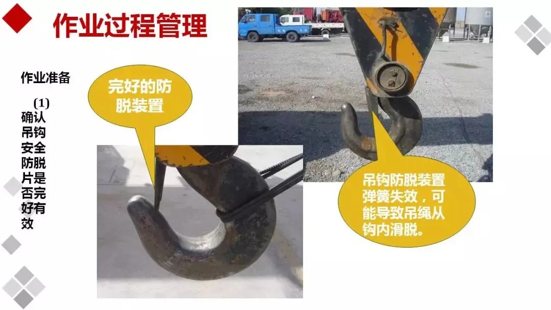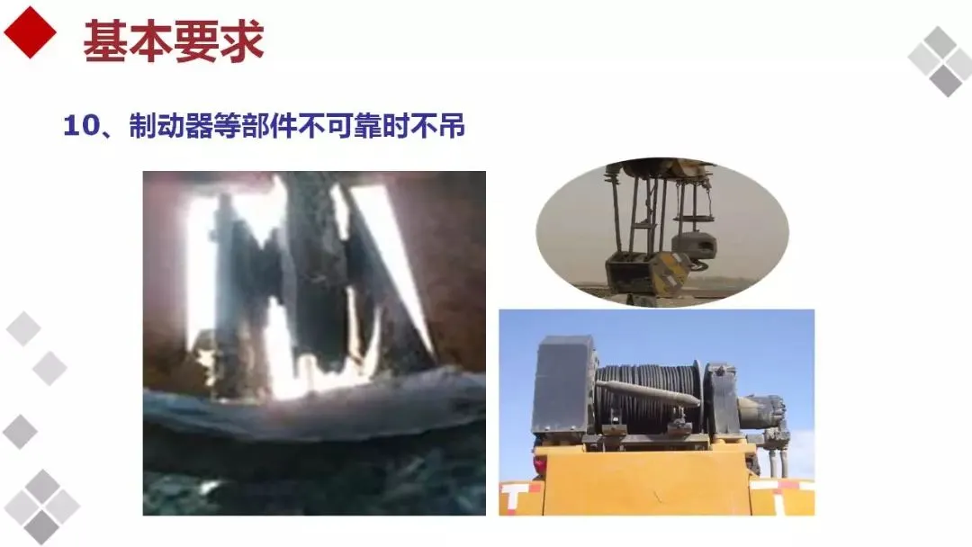 安全装置不齐全或动作不灵敏、失效者不吊