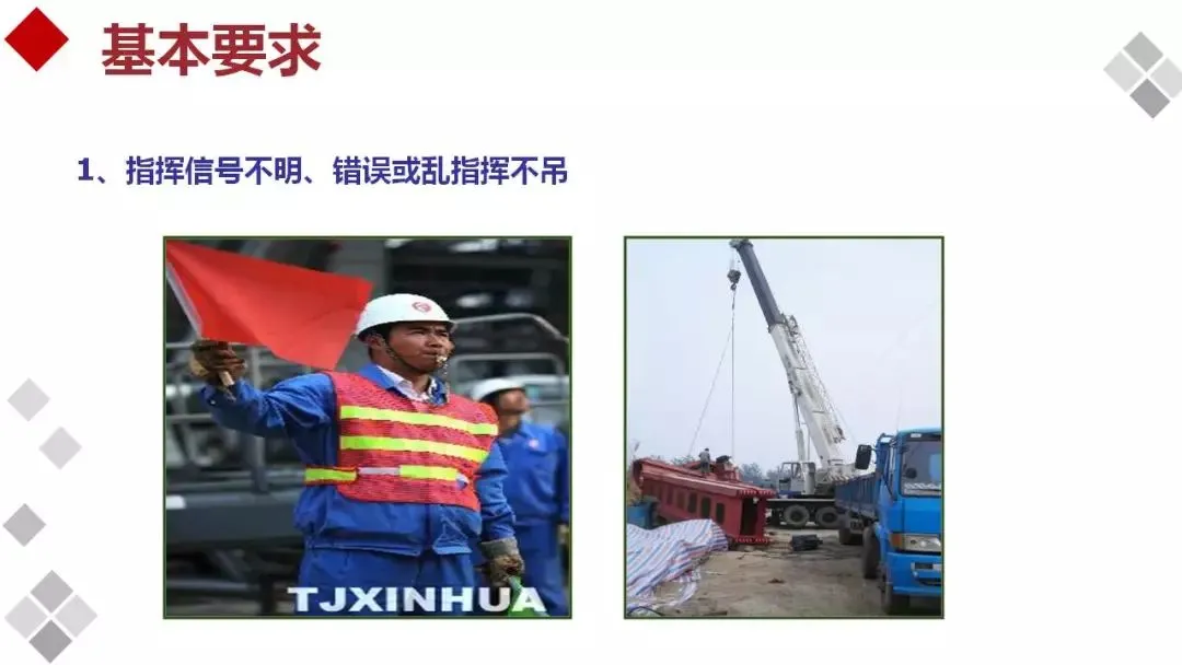 指挥信号不明或违章指挥不吊