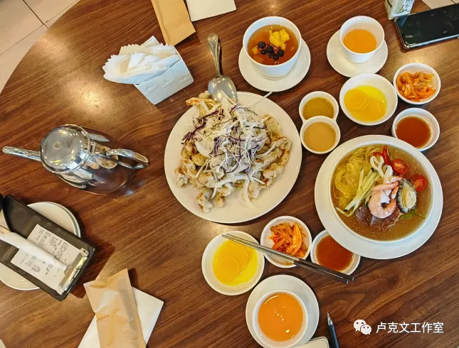 韩国餐厅对比中国餐厅,有三个特点:菜里没肉、没有新鲜绿叶蔬菜、没有水果,总之价格贵、品质低,对习惯了平时有鱼有肉、有蔬菜水果的中国人来说,餐食品质是大大下降了的。