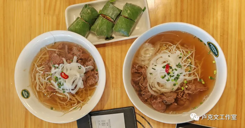 到天安时,当地华人领我去吃越南米粉,这两碗牛肉米粉,总算让我见到几片真正的牛肉了,加上旁边那个小吃,一共花费了184元人民币。