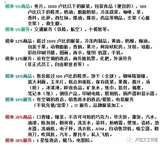 据他所说,印度是按不同的产品收不同的税,只有蔬菜这一类特殊产品不收税,其他税相当高,具体税率如下图
