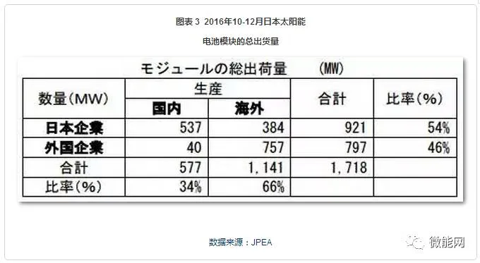 日本太阳能市场如预期般呈现衰退走势,2016年7月由中国市场卷起的全球性组件跌价更让日本太阳能厂的运营雪上加霜。Panasonic、Kyocera、夏普太阳能事业皆因市况疲软而呈现下滑走势,集团业绩受到拖累。自2014年起,日本已经是中国光伏组件最大的出口市场,中国品牌已经占据了日本市场份额的40%以上,到2016年已经达到了46%。