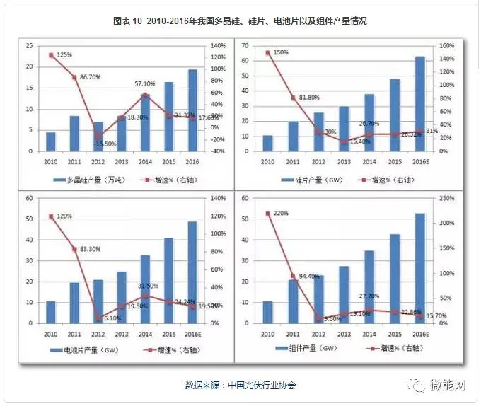 2016年中国光伏发电新增装机容量34.54GW,累计装机容量77.42GW,新增和累计装机容量均为全球第一。其中,地面电站30.3GW,分布式电站4.24GW,分布式电站同比增长200%。