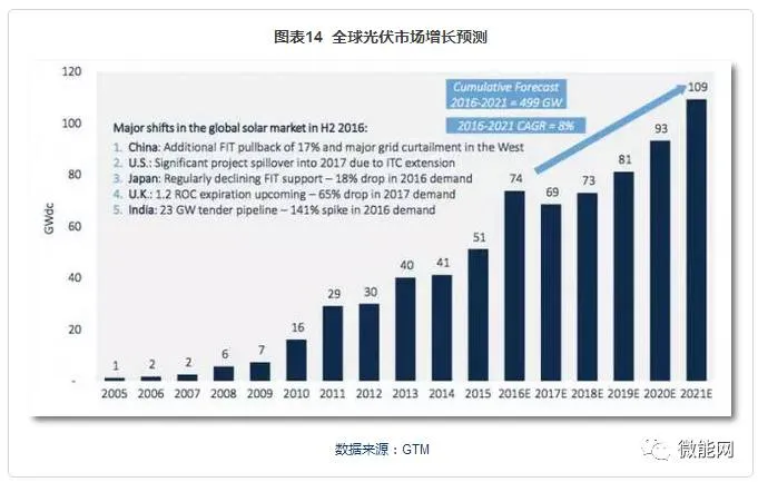 2016年全球光伏新增装机70GW,比2015年增长大约30%,然而,进入2017年后,作为我国光伏出口的几大重点市场--日本、德国、美国都将面临政策上的转变和监管上的不确定性,整体市场需求面临缩减,也将进一步影响我国光伏出口的表现。