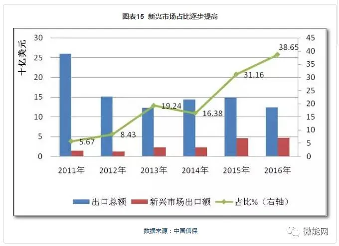 2016年,美国市场占中国组件出口的市场份额下降到11%,出口金额下降20.33%,为14.27亿美元。