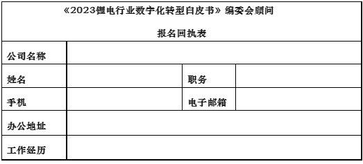 现将《2023锂电行业数字化转型白皮书》编委会顾问报名通道及具体事项通知如下: