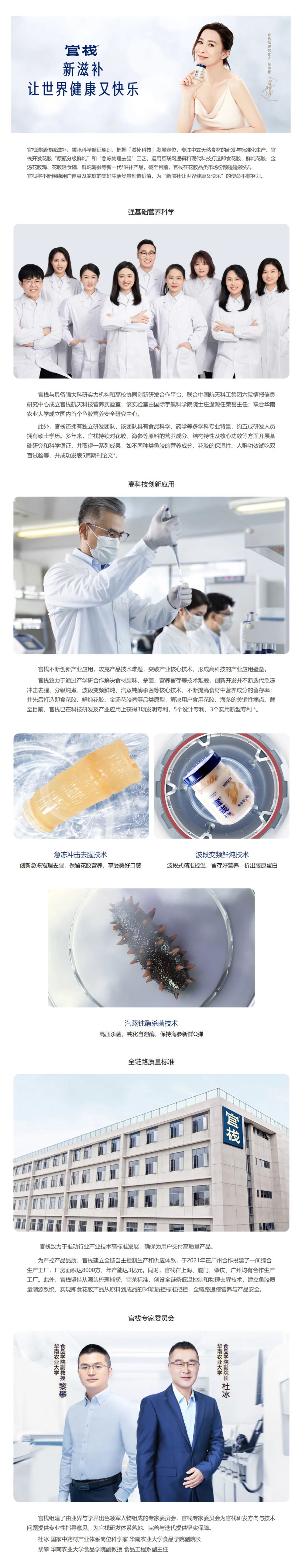 作为滋补行业的科技公司和即食花胶行业的领跑者,官栈公司基于“传统滋补,科学循证”的底层动力,一直致力于向全社会科普中华文明悠久的历史生成了深厚的“滋补理念”,同时通过大量的科学实践和现代的检验检测和临床技术进行“循证”,这使得传统滋补的“宝藏”转化为现代消费者既能理解又可应用的健康解决方案。