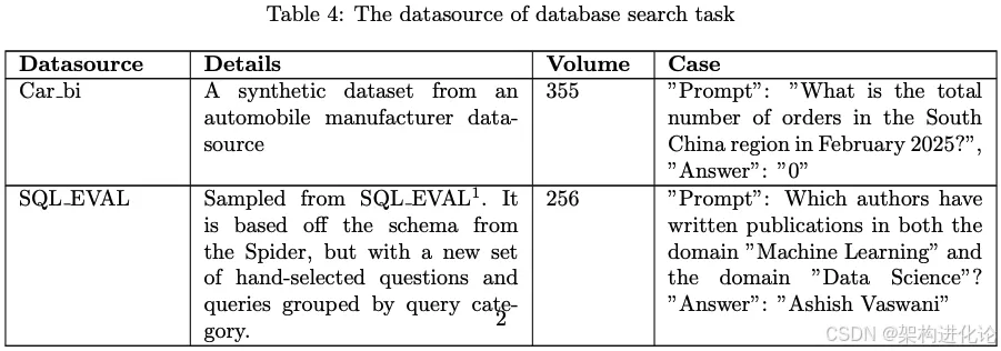 数据库搜索任务:要求LLM通过数据库MCP服务器从数据库中检索数据,使用的数据源包括: