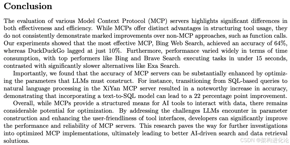基于MCPBench框架的评估结果揭示了MCP服务器在实际应用中的性能表现和关键发现,这些数据为架构师选择和使用MCP服务器提供了重要参考。