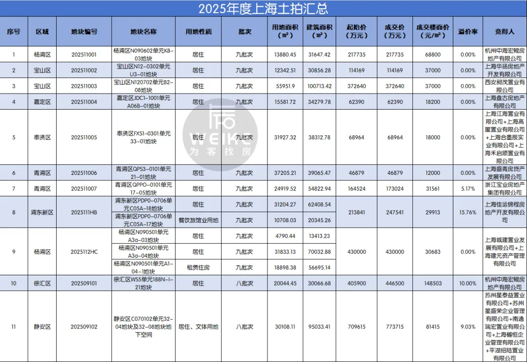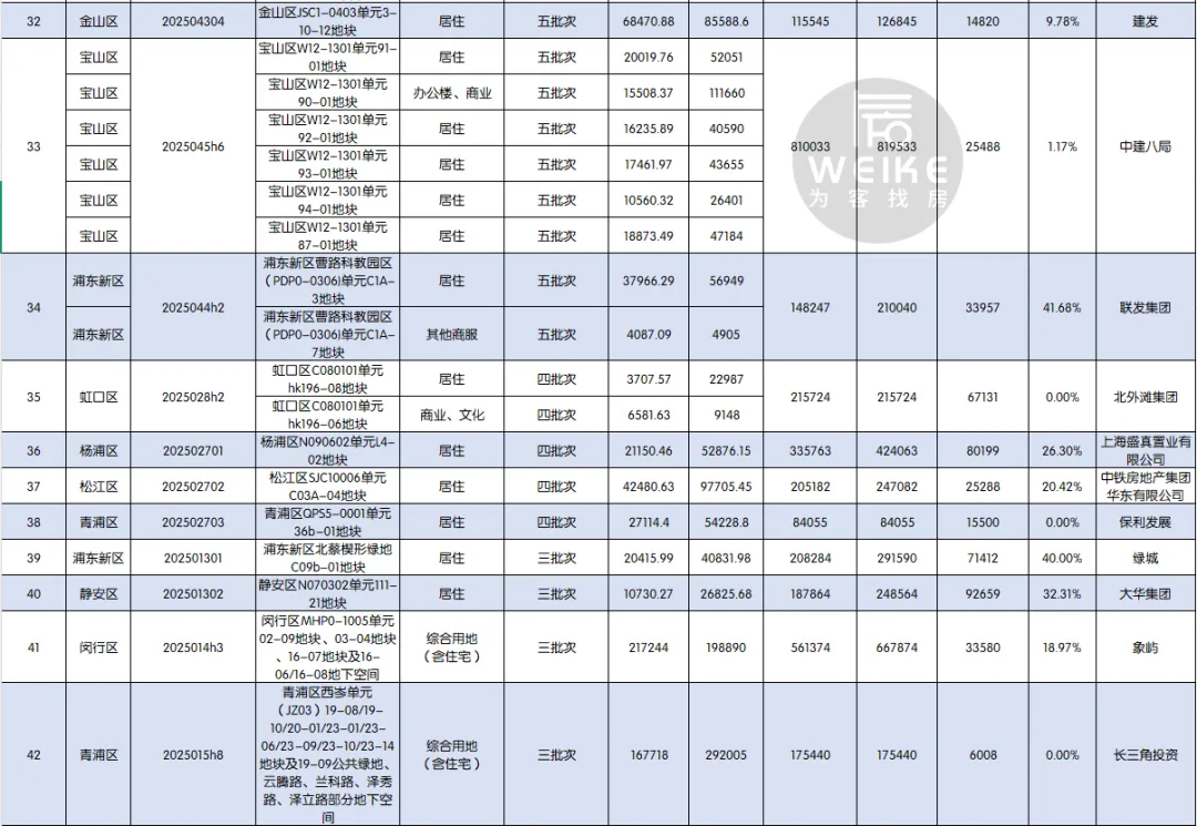 2025年九个批次「集中出让」48宗地,出让总面积1887763㎡,成交总额约1519.23亿元!上海土拍的节奏感极强,第五批次,6宗地块中有5宗溢价成交,浦东曹路、杨浦滨江等地块争夺激烈,溢价率屡创新高。