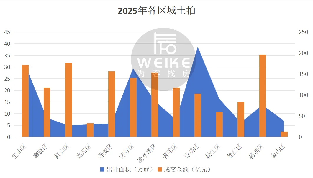 上海各区域土拍中,宝山区出让面积和成交金额均位列各区域之首。