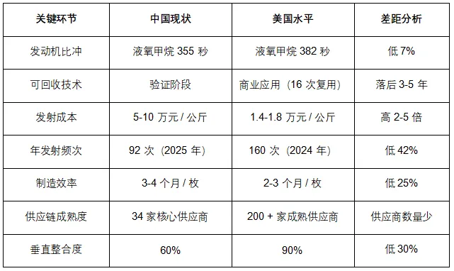 技术路线呈现多元化:在推进剂选择上,液氧甲烷凭借清洁环保、可重复使用性强等优势,正逐步成为主流技术路线;在回收技术上,垂直动力着陆成为大型火箭的首选方案。中国企业在液氧甲烷发动机、不锈钢箭体结构等领域已接近国际先进水平,但在可回收技术成熟度上仍落后美国 3-5 年。