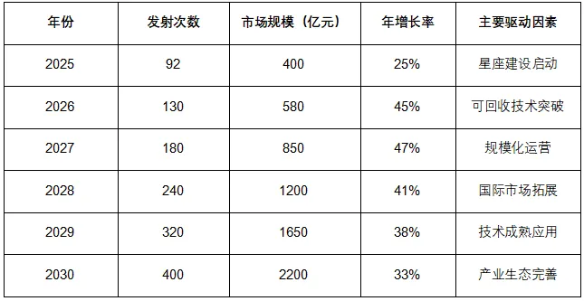 2.市场空间巨大:到 2030 年,中国商业火箭市场规模将达到 2200 亿元,年发射次数超过 400