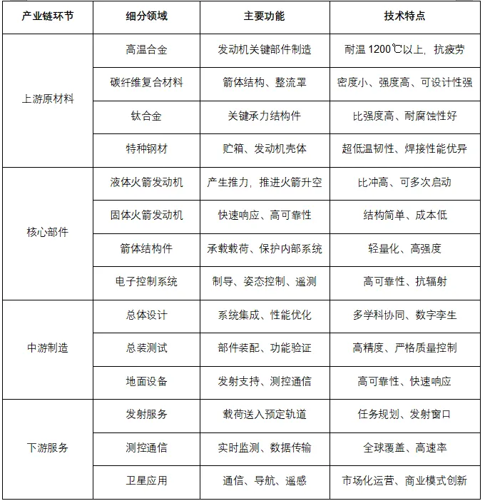 表 1:火箭产业链主要环节及功能