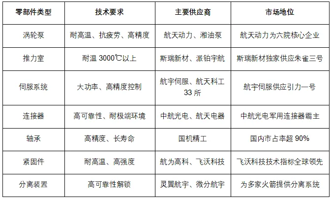 表 3:火箭关键零部件及主要供应商
