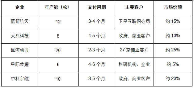 表 4:主要火箭制造企业产能与交付能力