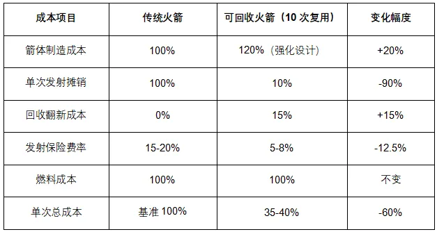 表 2:传统火箭与可回收火箭成本结构对比